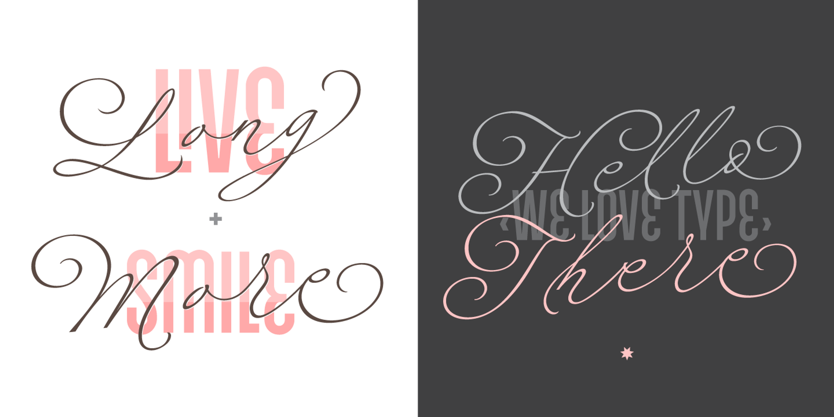 Fluire is a soft, minimal script inspired by tattoos, handwritten notes, and the beauty of going with the flow. Named after the Italian word _fluire_, meaning _to flow_, it captures that sense of ease and quiet movement. With nearly monoline style, it pairs effortlessly with its companion Art Deco-like Fluire Caps, available in playful variations like Up, Down, and Down Lines. Use it for wedding stationery, heartfelt cards, packaging, book covers — or, of course, tattoos.