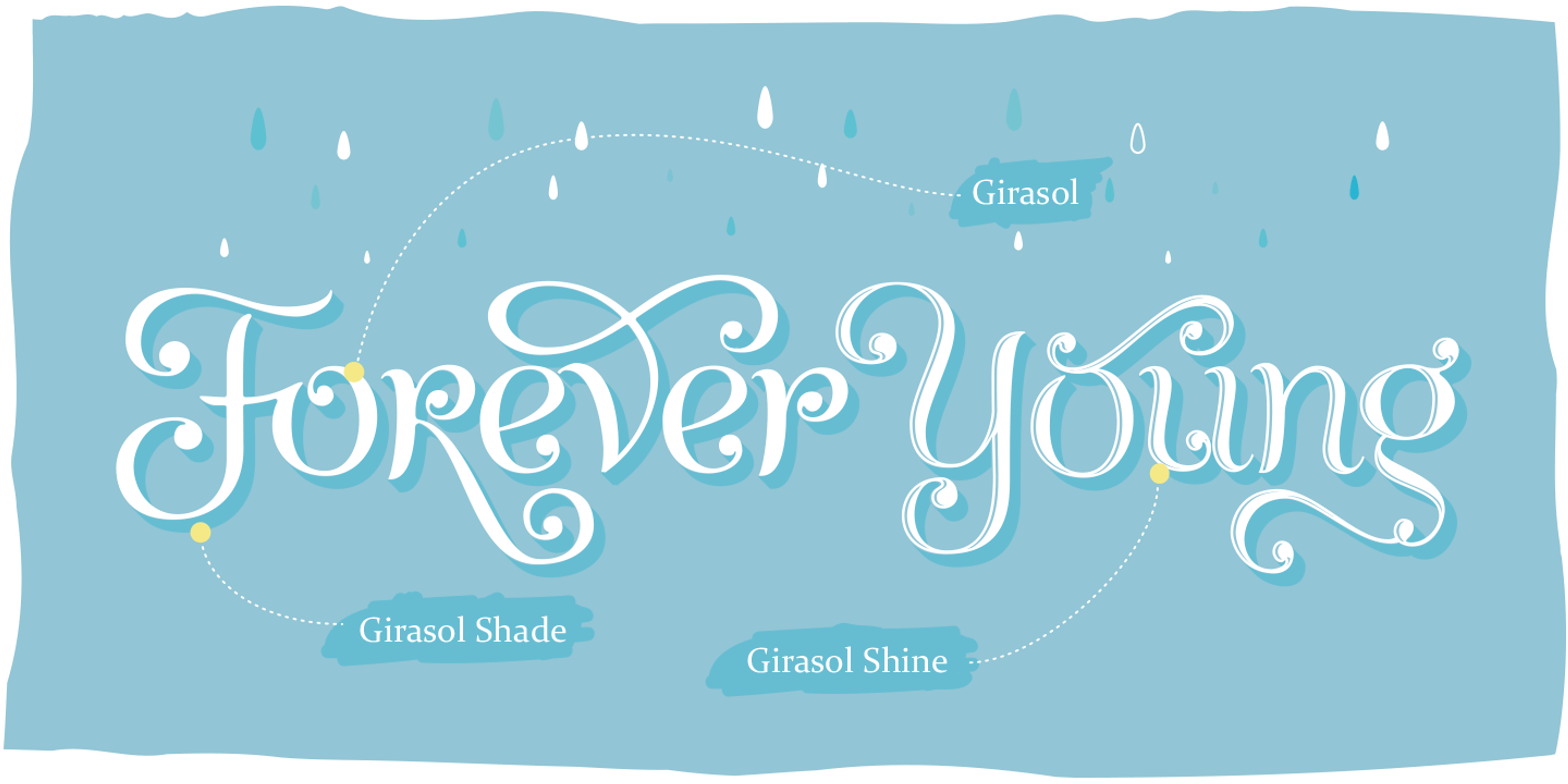 Girasol is a decorative upright script with a joyful, handmade feel. Featuring expressive alternates, swirly ball terminals, and a subtle copperplate influence, it’s available in three styles: Regular, Shade, and Shine. Ideal for novelty packaging, greeting cards, book covers, and other youthful projects, it adds warmth to any design. The font began with pencil sketches by Max’s mother, Susana, and was finished years later as a gift to her. Beauty can be found in the imperfect.