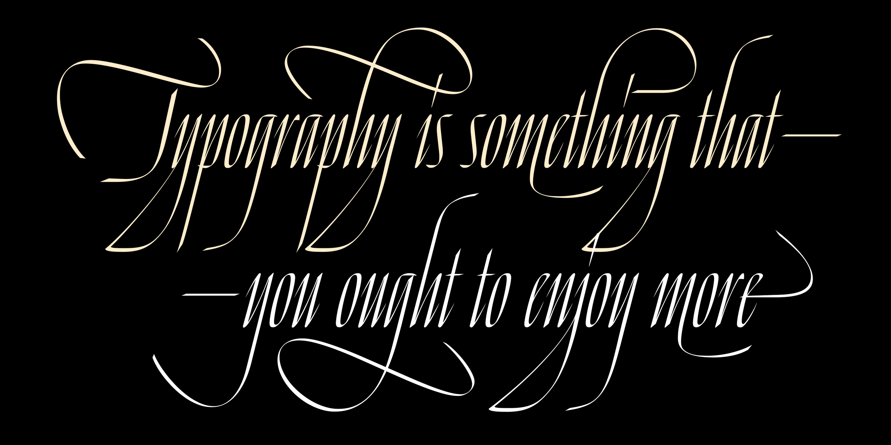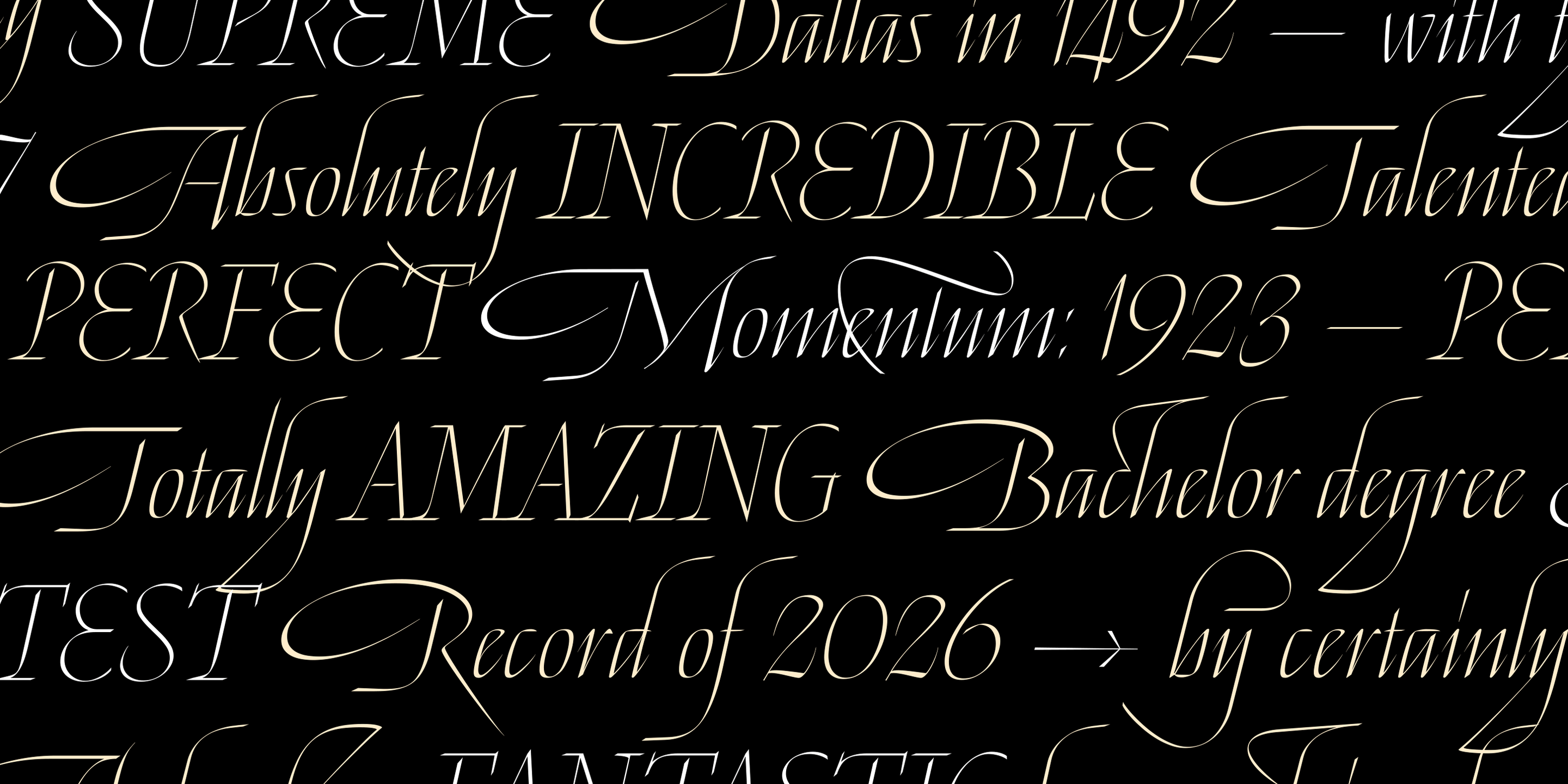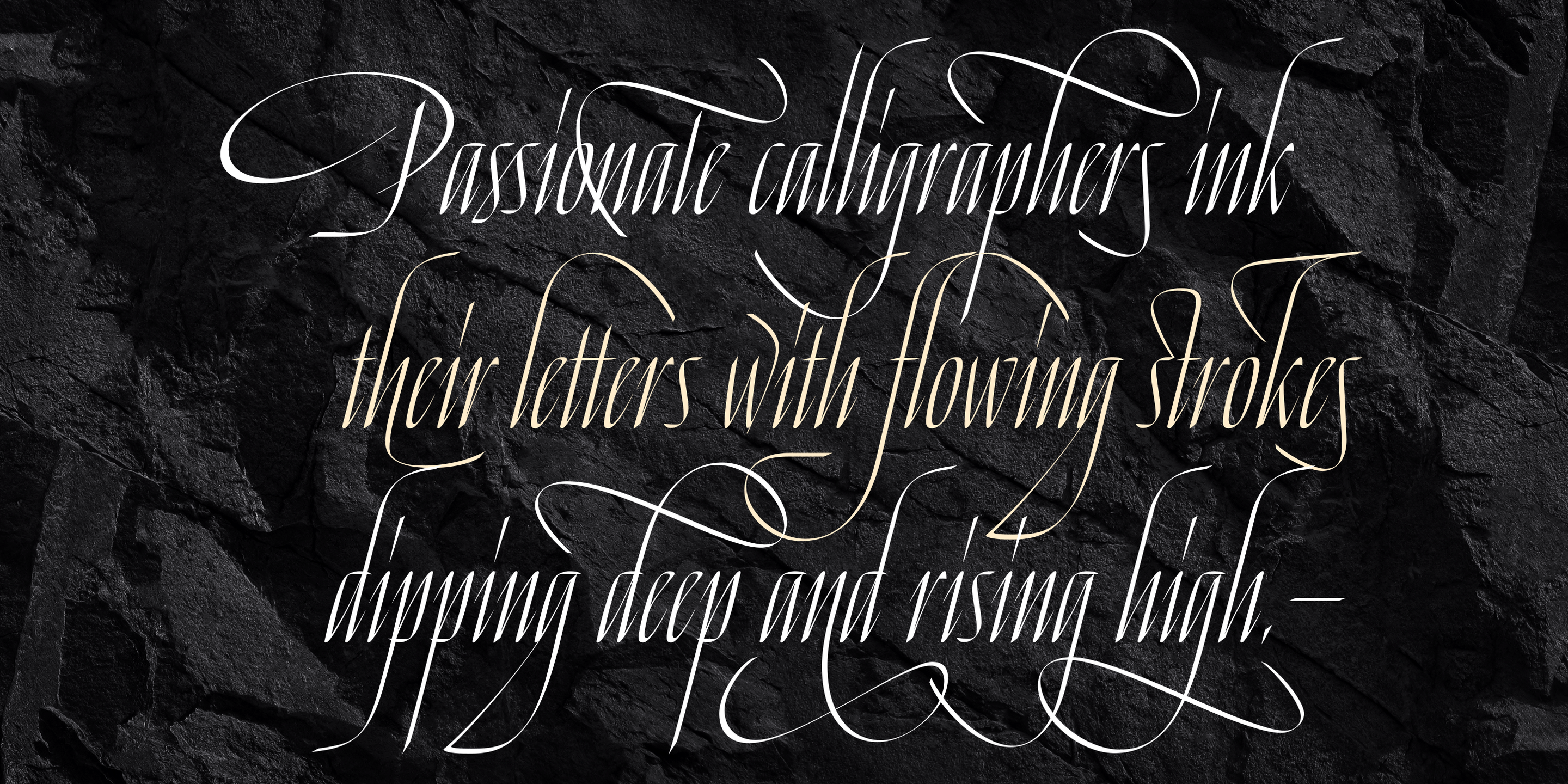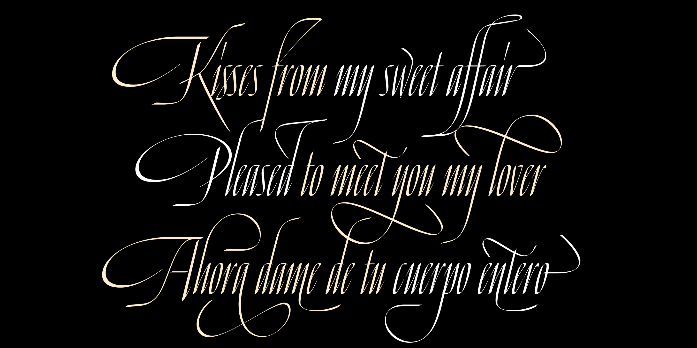 Venganza is a calligraphic font family filled with elegant flourish and syncopated precision. Based on the Chancery script, it is an exploration in angled stems, exaggerated verticality, extreme stroke contrast, and sweeping curves. The long descenders and high-arching ascenders give the typeface a visual breathing space between tension and release, a controlled flamboyance. Venganza is well-suited for delivering visual suspense and high drama to book covers, luxury branding, film posters, and editorial layouts.